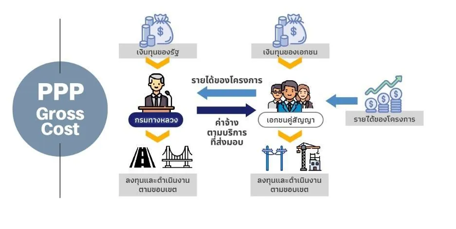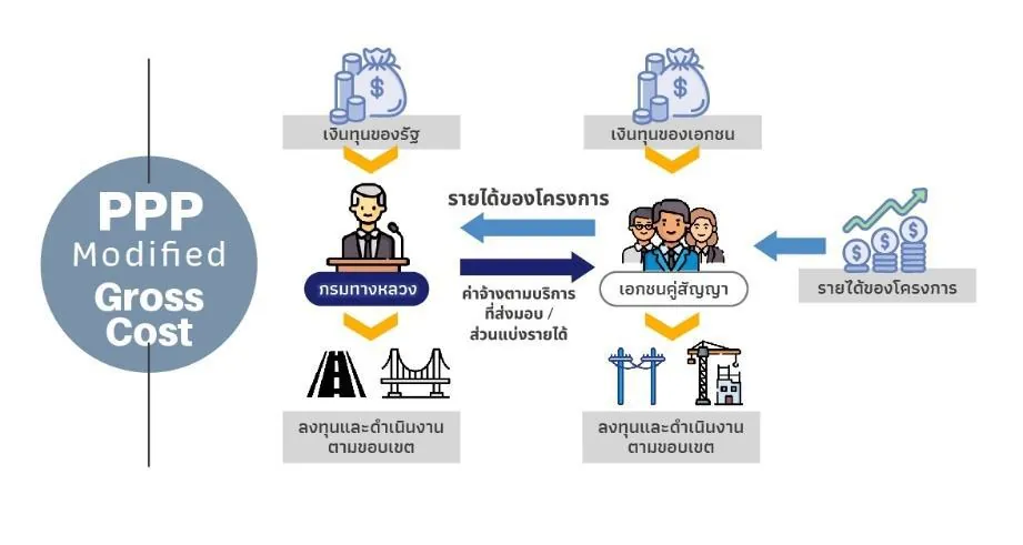 ภาคเอกชนเข้ามาร่วมลงทุนทั้งหมดหรือบางส่วน (ยกเว้นค่าจัดกรรมสิทธิ์ที่ดินและค่าชดเชยสิ่งปลูกสร้าง) โดยภาครัฐจะเป็นผู้จัดเก็บและรับรายได้ทั้งหมด และจะจ่ายค่าตอบแทนจากการให้บริการให้ในลักษณะที่เรียกว่า เงินค่าจ้างตามบริการที่ส่งมอบ “Availability Payment” ให้กับเอกชน